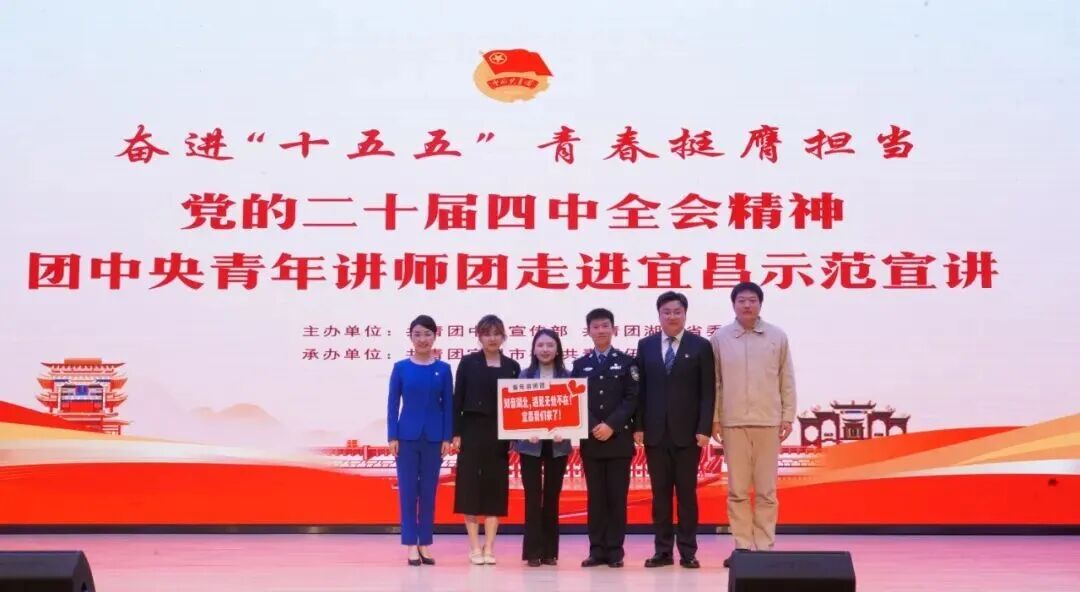 为深入学习宣传贯彻党的二十届四中全会精神,引导广大青少年把思想和行动统一到党中央决策部署上来,11月21日至22日,共青团中央青年讲师团走进湖北,在宜昌市、武汉理工大学举办党的二十届四中全会精神示范宣讲报告会。湖北省青年宣讲骨干代表、青年师生、公安干警、创业青年代表、新兴领域青年代表和“西部计划”志愿者等400余人现场聆听学习。
