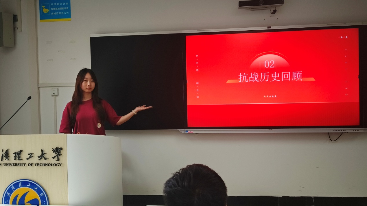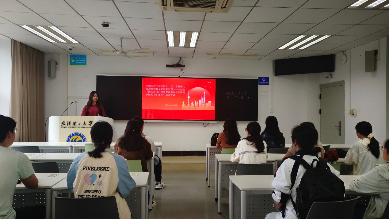 首先,团支书李楹阐述了在当今时代背景下重温抗战历史的重要意义,强调铭记这段悲壮而辉煌的历程,是新时代青年理解家国情怀、坚定理想信念的重要基石。