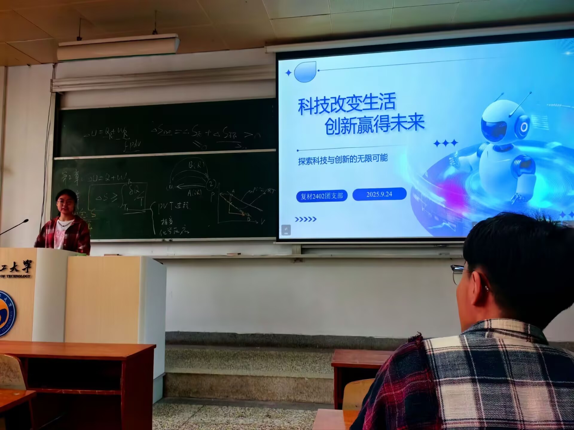 复材2402班于9月25日晚于鉴湖三教学楼召开了以“科技改变生活,创新赢得未来”为主题的团课。本次团课由团支书周之琳主持,班级全体团员共同参与。