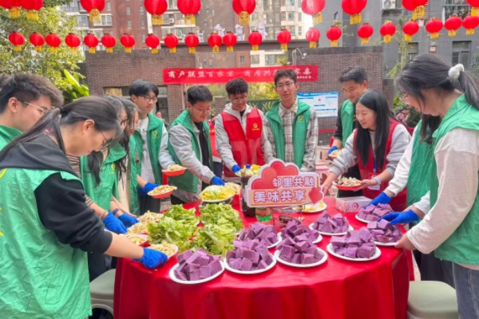 为促进社会和谐,向社会传递温暖,安全应急学院开展了社区志愿服务活动。10月24日,安全应急学院志愿者们前往武昌府社区帮助社区群众开展百家宴活动。