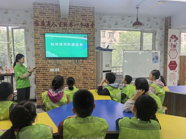 最后,志愿者播放了火场疏散演练视频,教导孩子们发生火灾时要如何用湿毛巾捂口鼻,如何快速撤离现场。并详细讲解了灭火器的“提、拔、握、压”使用口诀,让孩子们对使用灭火器有了基本概念。