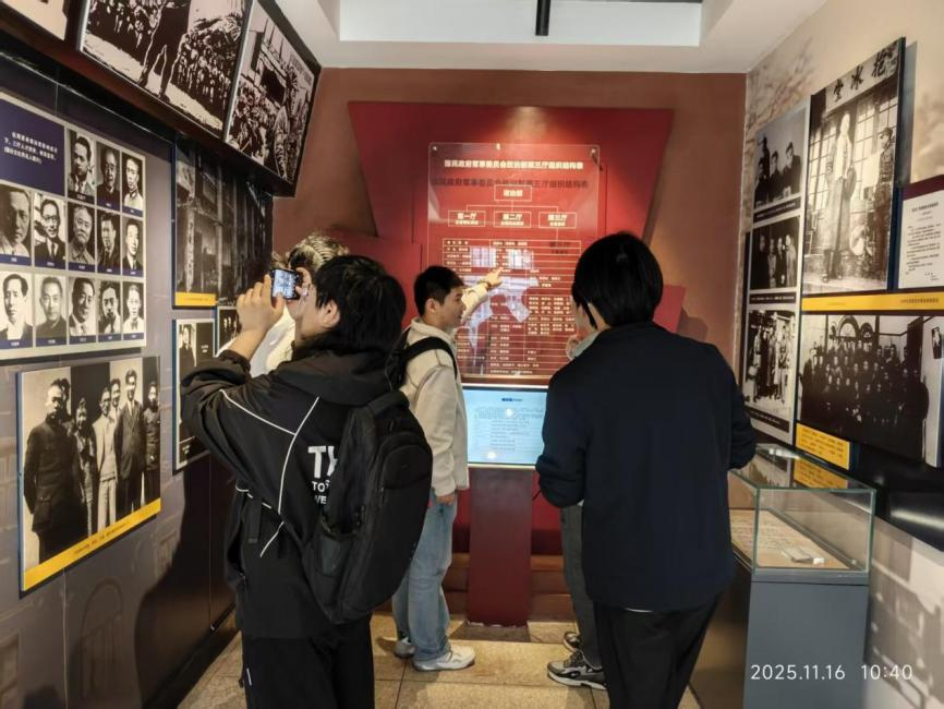 为深入学习贯彻习近平总书记关于用好红色资源、赓续红色血脉的重要论述,深化马克思主义理论学习,促进书本知识与实践的有机结合,11月16日上午,学院马克思主义理论研学会与学院研究生创新实践中心的同学联合组织开展了“走抗战之路,寻红色信仰”红色走读主题研学活动。活动以实地探访历史场景与珍贵文物为主要形式,引领同学们在行走中感悟革命真理,在回望中汲取奋进力量,深刻理解中国共产党将马克思主义基本原理与中国人民抗日战争实际相结合的早期探索与实践伟力。
