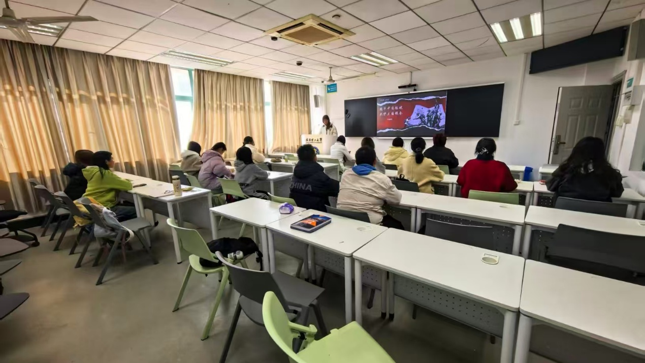 活动伊始,林子涵以“粮食安全的全球格局与中国担当”为切入点,通过数据图表和短视频,带领同学们系统学习我国粮食安全成就:粮食产量连续8年稳定在1.3万亿斤以上,用占世界9%的耕地养活近20%人口,建成全球最大粮食储备体系。同时,她也直击粮食浪费痛点,我国每年餐饮浪费约1800万吨的现状,让在场同学深感震撼。