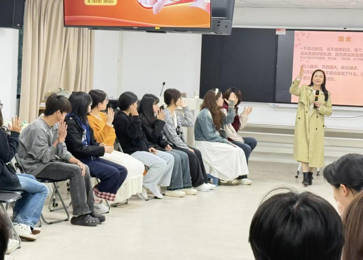 为进一步提升心理委员的情绪感知力与管理效能,筑牢校园心理健康防护屏障,11月13日下午,“学会与情绪共处”心理委员专题培训在智园13舍多功能厅成功举办。本次培训由梁宇颂老师主讲,土建学院、国教学院、法学社会学院全体心理委员齐聚一堂,在沉浸式互动中解锁情绪密码,在深度交流中探寻相处之道。