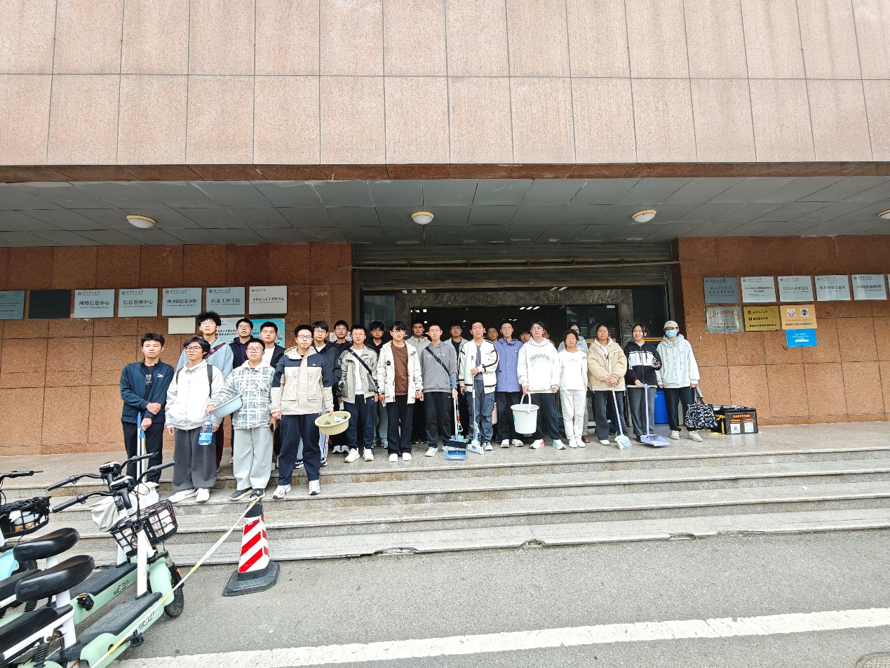 为弘扬志愿服务精神,增强班级凝聚力,电信类2508班全体同学于2025年10月25日下午开展了以“劳动践初心,青春献校园”为主题的志愿团日活动,对艾特楼部分教室及公共区域进行了全面清扫。