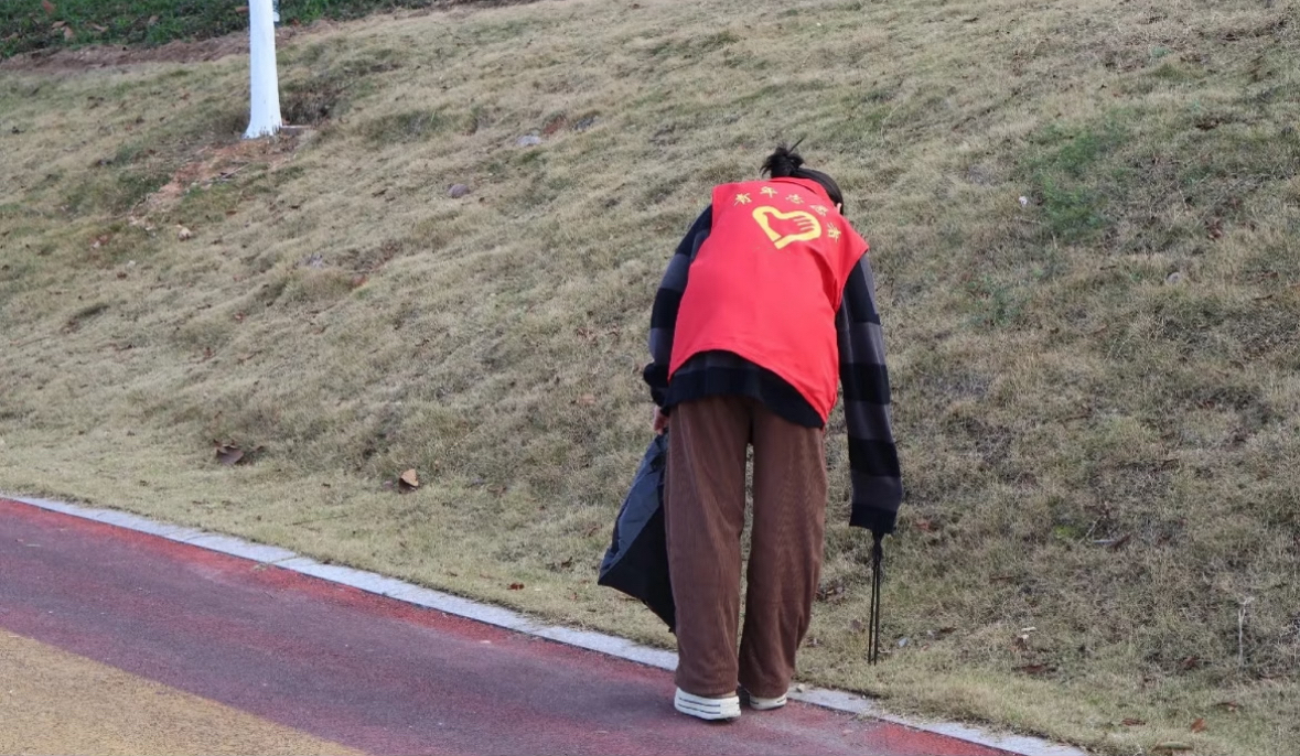 活动伊始,团支部书记围绕东湖生态保护意义、“两江四岸”发展规划及环保知识开展专题宣讲,明确活动流程与安全注意事项,强调垃圾分类、工具规范使用等要求,引导团员树立“保护环境人人有责”的理念。随后,大家身着志愿红马甲,手持垃圾夹、垃圾袋,沿绿道重点区域分组开展垃圾清理。团员们分工协作、耐心细致,对草坪、栈道、湖岸沿线的塑料瓶、食品包装、烟头、废弃杂物等进行全面捡拾,同时按可回收、其他垃圾等类别分类收纳,不放过任何一处卫生死角。