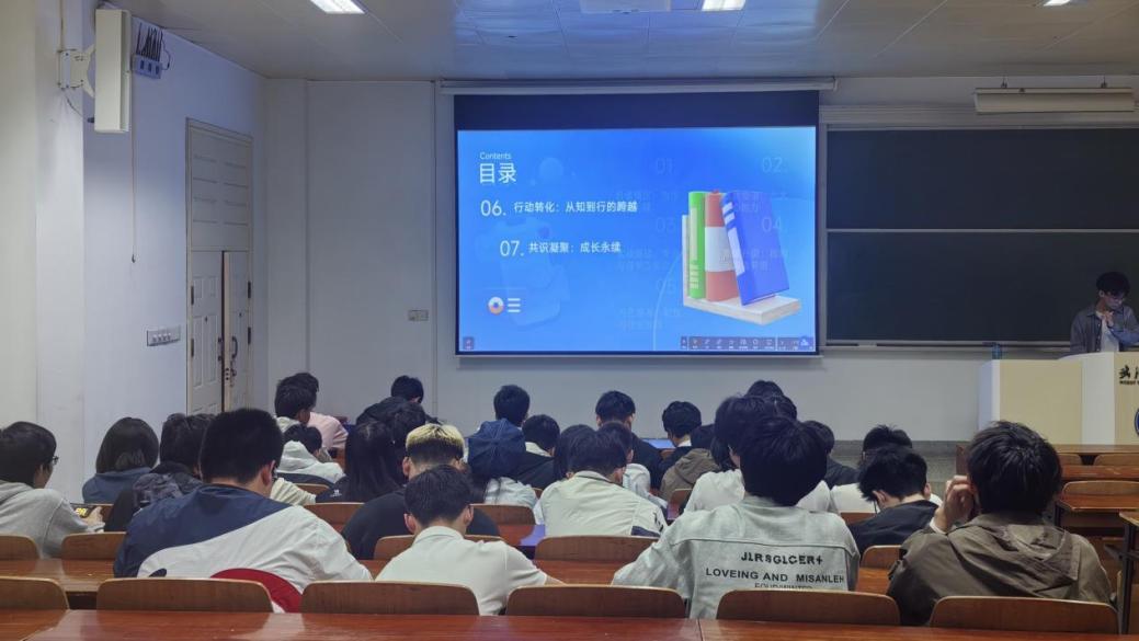 班会伊始,王健宇以“价值锚定:为何此刻关键”为切入点,阐述了在大学阶段这一人生战略储备期,提升核心素质对专业能力的培养、人格塑形的重要意义,引导同学们主动提升自身核心素质与核心竞争力,明确大学阶段的核心目标与努力方向。