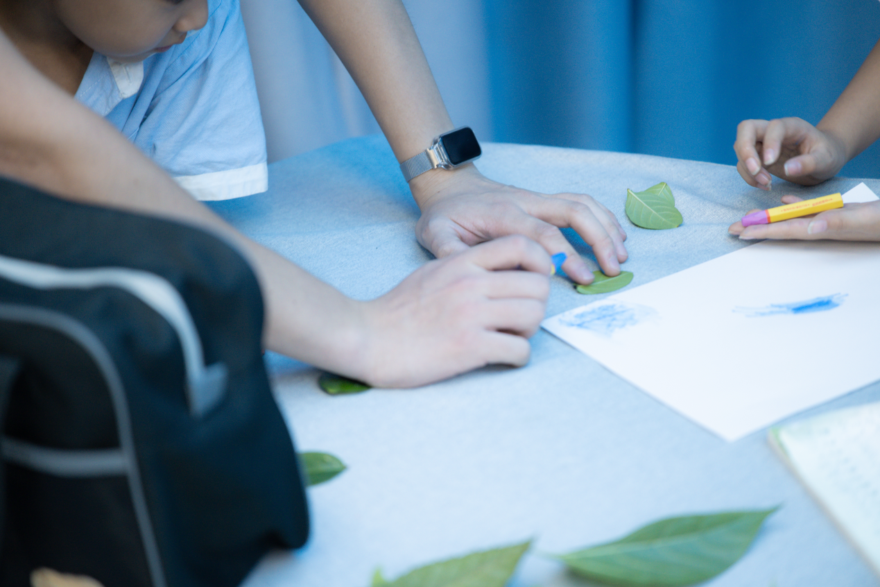 “我用树叶印出了小蝴蝶的翅膀!”一位小朋友举着作品笑称,“原来树叶和花瓣不只能看,还能当画笔!”志愿者徐同学表示,看到孩子们从“不敢下手”到主动尝试混搭色彩,正是课程想要传递的“创意无边界”的理念。