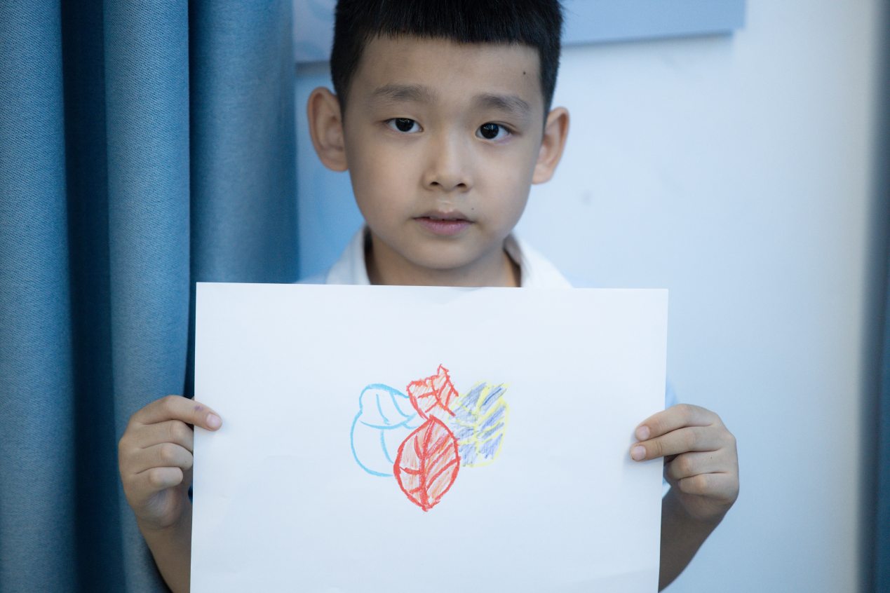 活动尾声,孩子们手持完成的画作在走廊交流分享,春晖社志愿者将作品分类整理,计划制作主题展板陈列。