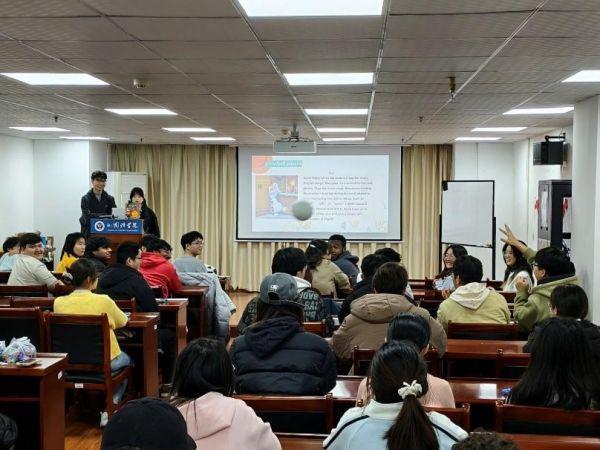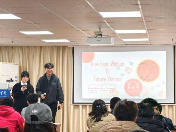 12月11日晚,武汉理工大学外国语学院主办,英语协会承办的“新年祝福,未来展望”主题英语角活动在鉴湖学海楼11楼报告厅顺利举行。本次活动由外国语学院王燕萍老师到场指导,英语协会黄熙雯、罗阳同学主持。